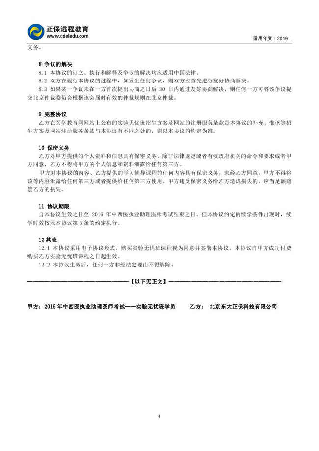 中西醫(yī)結(jié)合執(zhí)業(yè)助理醫(yī)師“實(shí)驗(yàn)無憂班”協(xié)議書