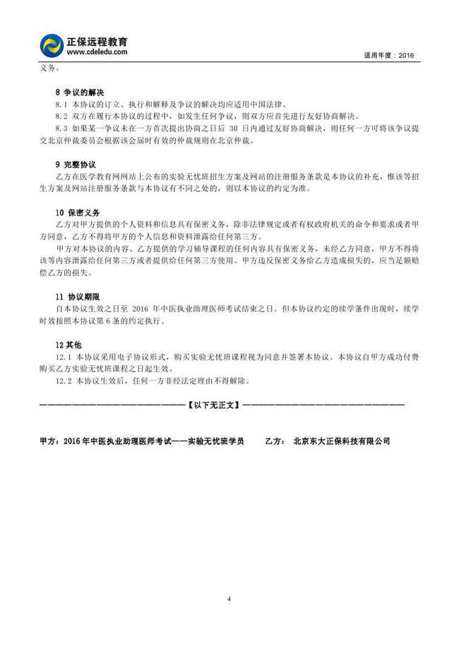 中醫(yī)執(zhí)業(yè)助理醫(yī)師“實驗無憂班”協(xié)議書