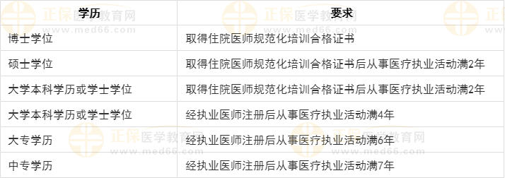 外科主治醫(yī)師考試報名工作年限要求(以各地區(qū)通知為準(zhǔn)):
