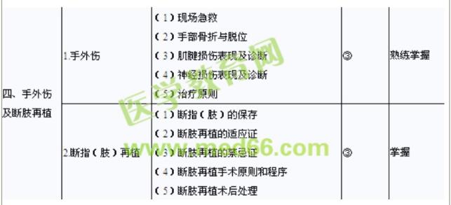 | 7.其他關(guān)節(jié)置換 | (1)人工肩關(guān)節(jié)置換的適應(yīng)證和禁忌證 (2)人工肘關(guān)節(jié)置換的適應(yīng)證和禁忌證 (3)人工踝關(guān)節(jié)置換的適應(yīng)證和禁忌證 | ③ | 了解 | |