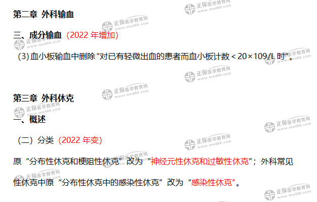 外科輸血、外科休克是外科主治醫(yī)師考試教材涉及的內(nèi)容,2022年外科主治醫(yī)師教材已公布,外科輸血、外科休克部分內(nèi)容變化,醫(yī)學(xué)教育網(wǎng)整理如下: