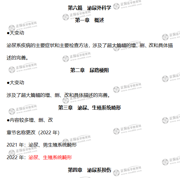 考生速看!2022年外科主治醫(yī)師教材公布啦!一些考點內(nèi)容發(fā)生變動,醫(yī)學(xué)教育網(wǎng)整理了2022年外科主治教材變動總結(jié)—泌尿外科學(xué)篇,一起看看哪些考點變了吧!