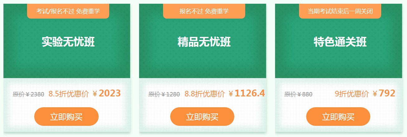 在2019年1月10日-2019年1月31日期間,購(gòu)買實(shí)驗(yàn)無(wú)憂班享受8.5折優(yōu)惠,精品無(wú)憂班享受8.8折優(yōu)惠,特色直達(dá)班享受9折優(yōu)惠。快搶購(gòu)>>