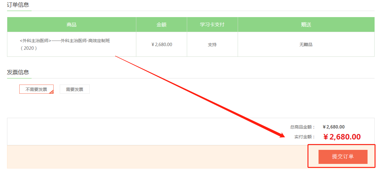 在訂單頁(yè)確認(rèn)無(wú)誤后,點(diǎn)擊“提交訂單”;