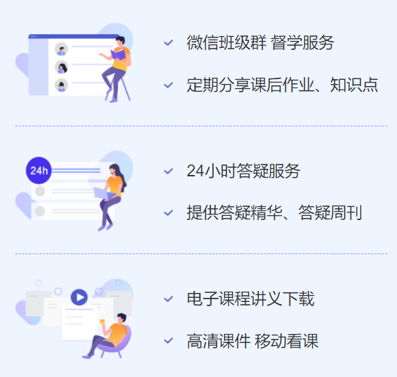 班級(jí)群督學(xué)、多樣答疑服務(wù)、高清視頻課件、電子講義、移動(dòng)看課等多元化教學(xué)服務(wù),助你備考加速!