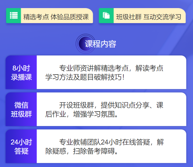 ?以錄播課形式,講解精選考點(diǎn)內(nèi)容,幫助考生掌握考點(diǎn)學(xué)習(xí)方法和做題技巧。