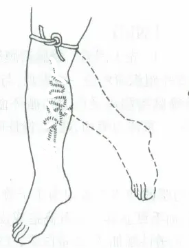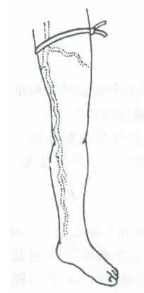 意義:兩根繃帶之間出現(xiàn)曲張靜脈,表示該處交通靜脈功能不全