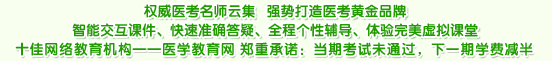 2.為解決學(xué)員對學(xué)習(xí)效果的后顧之憂,凡參加“醫(yī)學(xué)教育網(wǎng)臨床執(zhí)業(yè)助理醫(yī)師考試精品班”輔導(dǎo)的學(xué)員,當(dāng)期考試未通過,下一期學(xué)費(fèi)僅按當(dāng)期輔導(dǎo)價格減半收取。