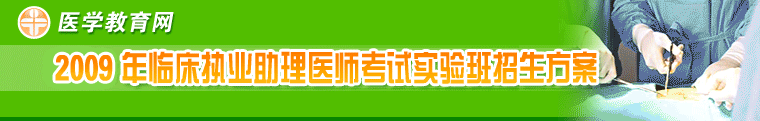 醫(yī)學教育網(wǎng)自推出臨床執(zhí)業(yè)助理醫(yī)師考試輔導以來,憑借雄厚的師資力量、領(lǐng)先的課件制作技術(shù)、嚴謹?shù)慕虒W作風、靈活多樣的教學方式,高質(zhì)量的教學效果,受到了廣大考生的一致好評,在總結(jié)過去多年輔導成功經(jīng)驗的基礎(chǔ)上,美國紐交所上市公司——正保遠程教育集團(股票代碼:DL)旗下品牌、中國十佳網(wǎng)絡(luò)教育機構(gòu)----醫(yī)學教育網(wǎng)組織了一大批臨床執(zhí)業(yè)助理醫(yī)師考試輔導專家教授,從廣大考生的實際需求出發(fā),融入先進的教學理念,大膽創(chuàng)新,結(jié)合臨床執(zhí)業(yè)助理醫(yī)師考試的命題規(guī)律、重點、難點、疑點、采用全新的智能交互手段,現(xiàn)強勢推出“2009年臨床執(zhí)業(yè)助理醫(yī)師考試實驗班”,針對每個考生的不同學習狀況、進行有針對性的講解、訓練、答疑、?肌⒉W習過程進行全程跟蹤、分析、指導,從整體上大幅提升學員的考試通過率,現(xiàn)在報名更有超值優(yōu)惠,機會難得,欲報從速