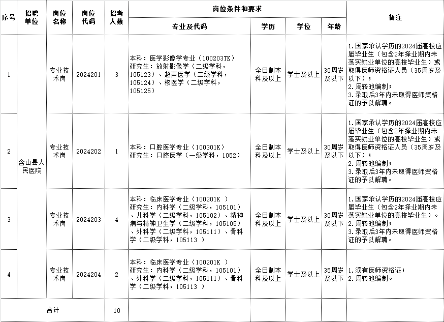 附件1.2024年含山縣人民醫(yī)院公開招聘專業(yè)技術(shù)人員崗位計劃表