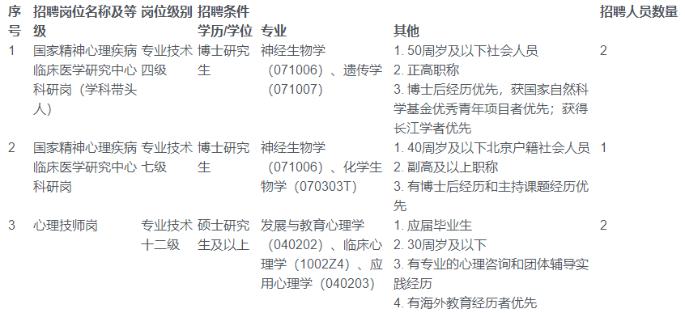 根據(jù)《北京市事業(yè)單位公開招聘工作人員實(shí)施辦法》(京人社專技發(fā)〔2010〕102號)、《關(guān)于進(jìn)一步規(guī)范事業(yè)單位公開招聘有關(guān)問題的通知》(京人社專技發(fā)〔2012〕247號)、《北京市引進(jìn)畢業(yè)生管理辦法》(京人社畢發(fā)〔2021〕22號)、《首都醫(yī)科大學(xué)附屬北京安定醫(yī)院公開招聘實(shí)施辦法》等文件規(guī)定,結(jié)合醫(yī)院發(fā)展需要,現(xiàn)將我院編內(nèi)招聘事宜公告如下: