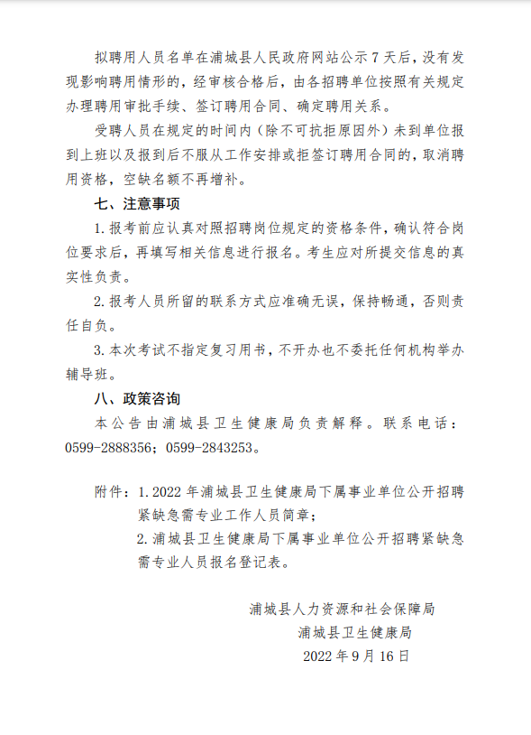 附件1: 2022年浦城縣衛(wèi)生健康局下屬事業(yè)單位公開招聘緊缺急需專業(yè)工作人員崗位簡章一覽表