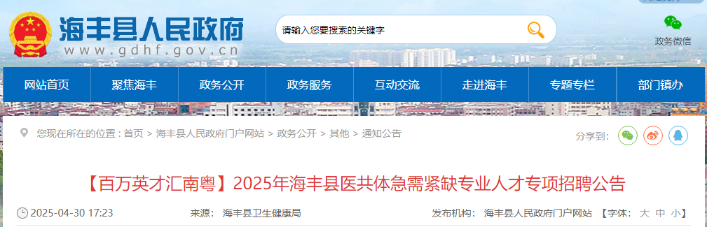2025廣東汕尾市海豐縣醫(yī)共體急需緊缺專業(yè)人才專項(xiàng)招聘16人公告