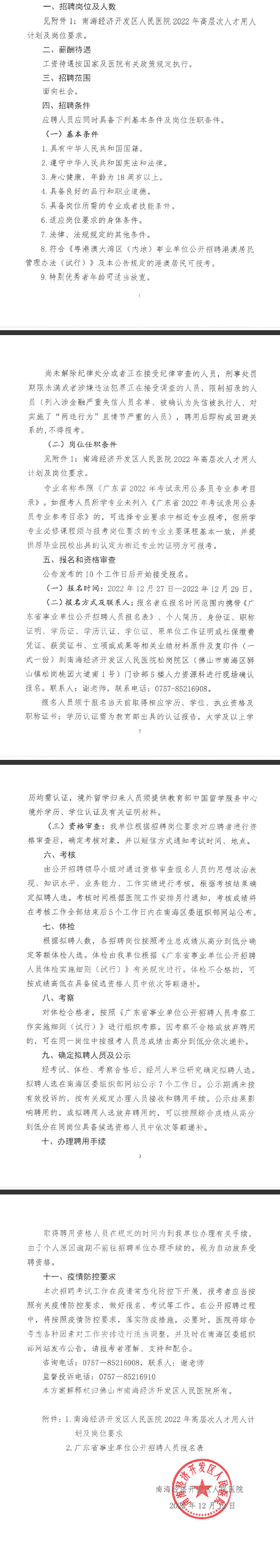 佛山市南海經(jīng)濟開發(fā)區(qū)人民醫(yī)院2022年第三批招聘高層次人才2人