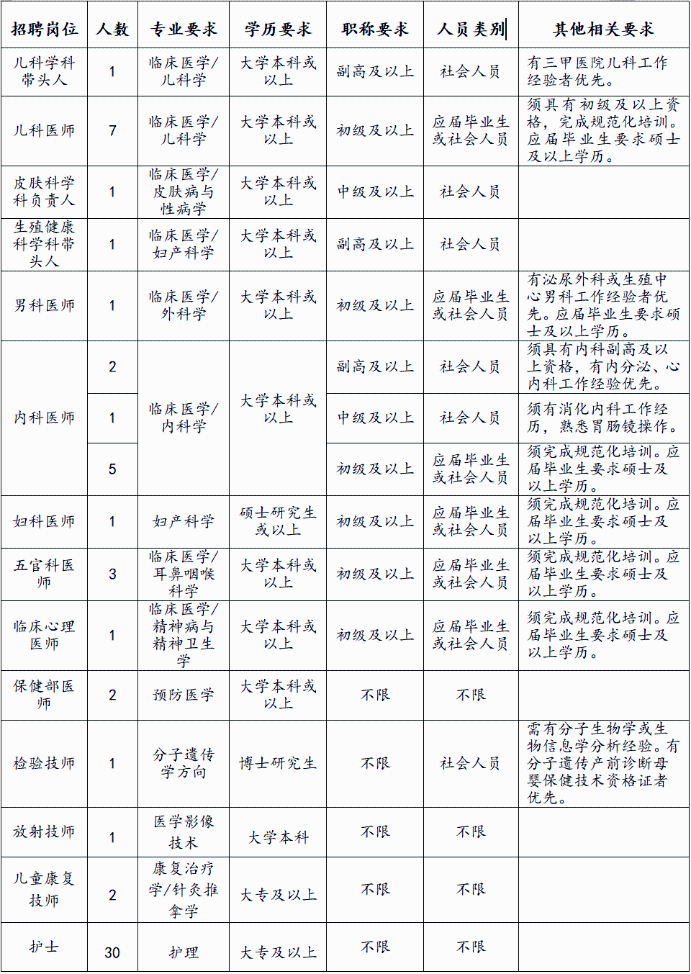 2、社會(huì)人員(往屆畢業(yè)生):應(yīng)聘崗位的社會(huì)人員應(yīng)具有初級(jí)及以上衛(wèi)生專(zhuān)業(yè)技術(shù)職稱(chēng)。如應(yīng)聘者以大專(zhuān)學(xué)歷報(bào)考,年齡需未滿(mǎn)35周歲。