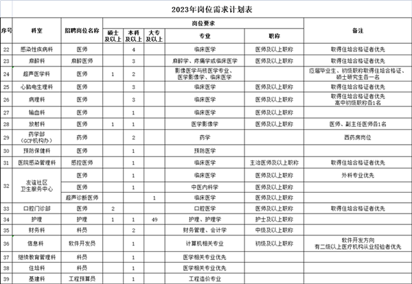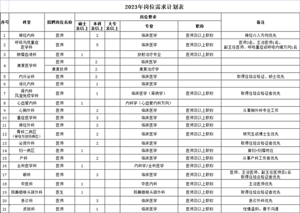 臨床、醫(yī)技、行政等崗位人才續(xù)表