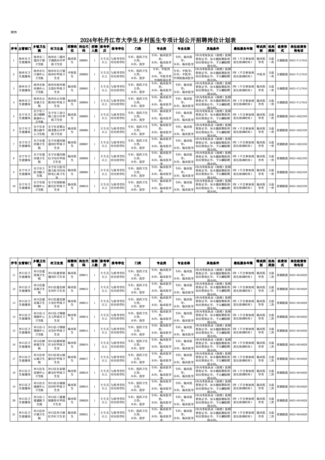 本次計(jì)劃招聘大學(xué)生鄉(xiāng)村醫(yī)生21名。具體招聘單位、崗位、人數(shù)、條件等情況詳見《2024年牡丹江市大學(xué)生鄉(xiāng)村醫(yī)生專項(xiàng)計(jì)劃公開招聘崗位計(jì)劃表》(附件1,以下簡(jiǎn)稱《崗位計(jì)劃表》)。