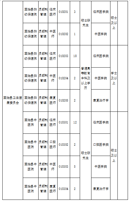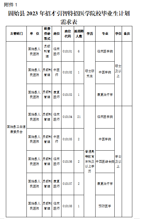 普通高等教育??萍耙陨蠈W(xué)歷應(yīng)屆和往屆畢業(yè)生。招聘計(jì)劃詳見《固始縣2023年特招醫(yī)學(xué)院校畢業(yè)生計(jì)劃需求表》(見附件1)和《固始縣2023年特崗全科醫(yī)生計(jì)劃需求表》(見附件2)。