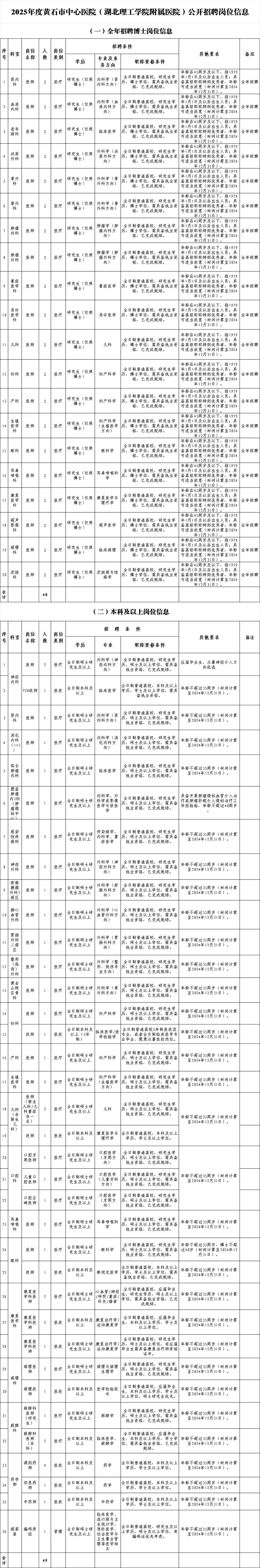 醫(yī)療招聘進(jìn)行時(shí)!各地紛紛發(fā)布醫(yī)療招聘公告,廣納賢才,醫(yī)學(xué)教育網(wǎng)為了更好的服務(wù)有就業(yè)意愿的相關(guān)醫(yī)療人員,將會(huì)為大家整理并更新各地醫(yī)療招聘的相關(guān)公告,大家可持續(xù)關(guān)注!以下是公告“2025年度黃石市中心醫(yī)院(湖北理工學(xué)院附屬醫(yī)院)招聘人員若干名”的相關(guān)內(nèi)容: