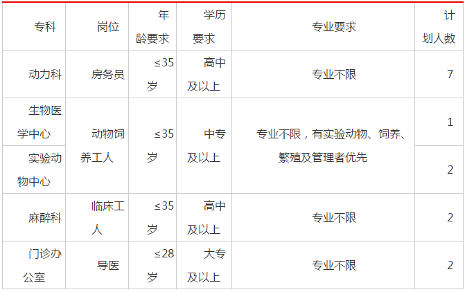 我院因工作需要,現(xiàn)公開招聘勞務(wù)派遣制員工若干,具體崗位及要求如下: