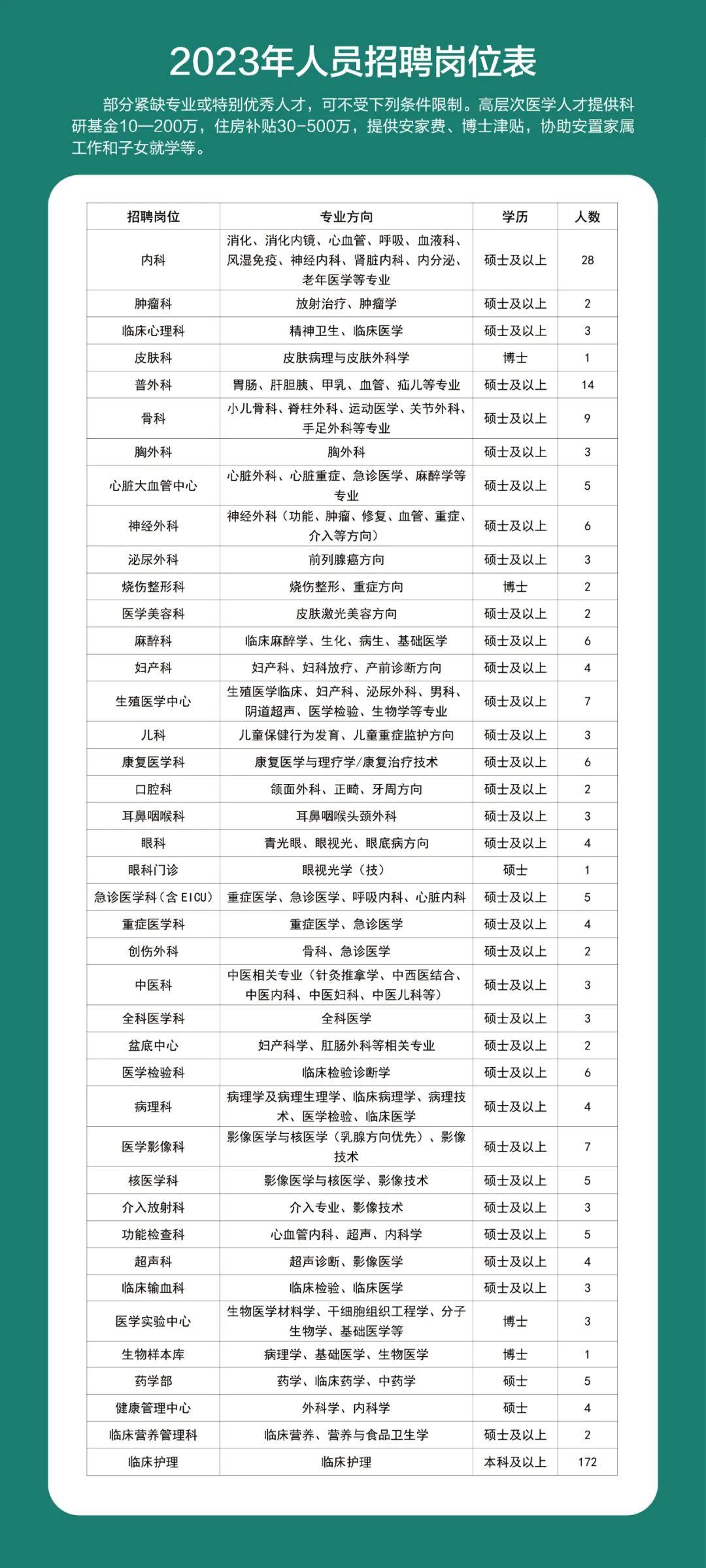 為營造識才愛才敬才用才的良好環(huán)境,醫(yī)院制定了一系列人才相關(guān)政策。為人才提供暫住房、購房補(bǔ)貼、租房補(bǔ)貼、安家費、科研啟動基金、五險一金等保障支持條件;協(xié)助解決配偶工作安置、子女入學(xué)等。