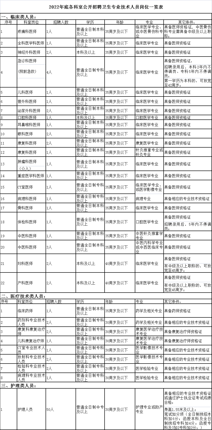 面向社會(huì)公開招聘非在編合同制專業(yè)技術(shù)人員共95名。其中臨床醫(yī)師33名、醫(yī)療技術(shù)類人員12名、護(hù)理人員50名。崗位詳細(xì)信息見2022年廣豐區(qū)人民醫(yī)院公開招聘非在編專業(yè)技術(shù)人員崗位信息一覽表(附件一)。