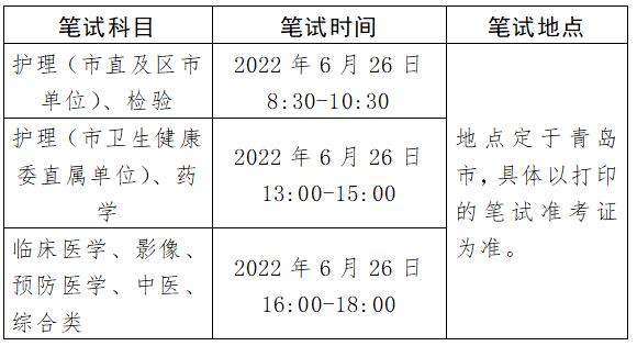 2022年青島市衛(wèi)生健康系統(tǒng)公開(kāi)招聘統(tǒng)一筆試安排