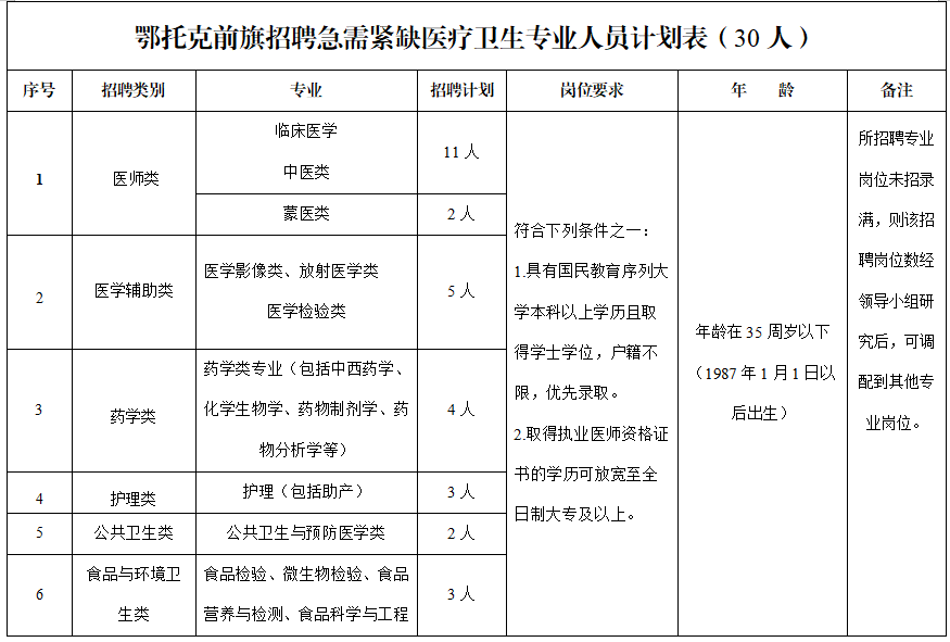 鄂爾多斯市鄂托克前旗招聘衛(wèi)生健康系統(tǒng)急需緊缺醫(yī)療衛(wèi)生專業(yè)技術(shù)人員30人