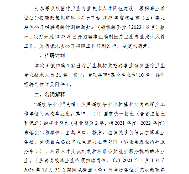 內(nèi)蒙古錫林郭勒盟正鑲白旗招聘事業(yè)編制醫(yī)療衛(wèi)生專業(yè)技術(shù)人員31人