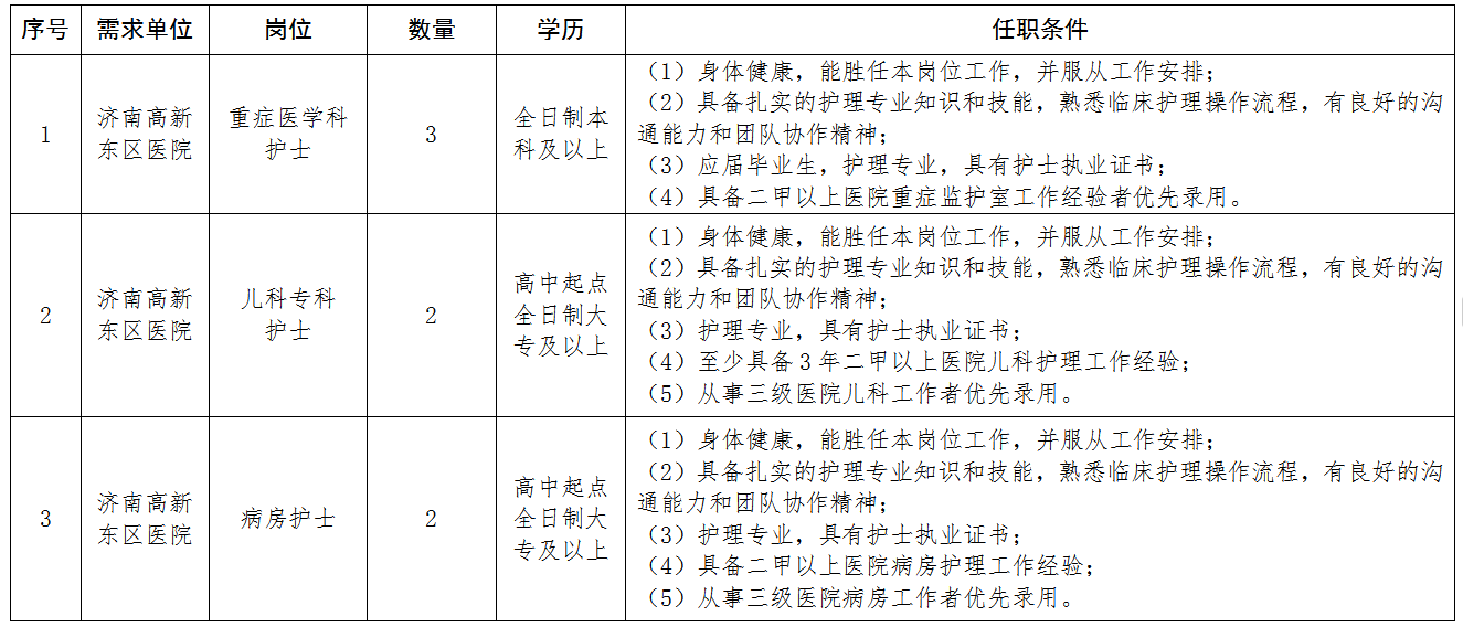 濟南高新東區(qū)醫(yī)院公開招聘勞務(wù)派遣制護士7名