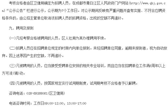 成都市青白江區(qū)醫(yī)療衛(wèi)生事業(yè)單位考核招聘緊缺衛(wèi)生專業(yè)技術人才40人公告公布了,為了幫助大家了解,醫(yī)學教育網(wǎng)小編特別整理以下內(nèi)容,請參考: