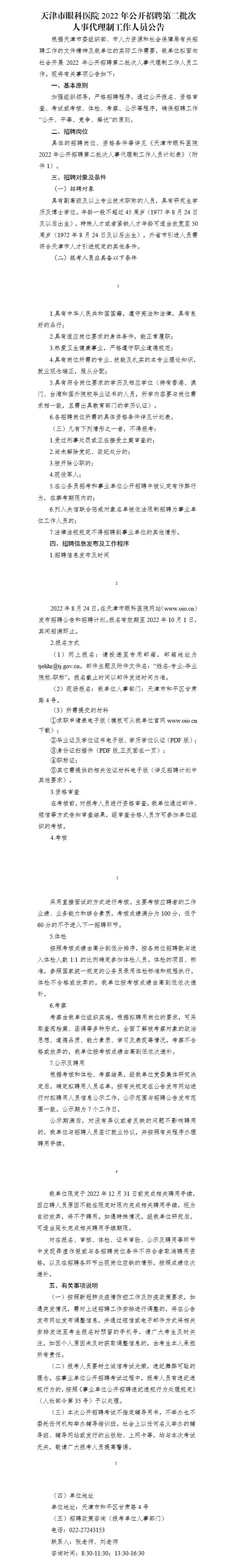 附件:天津市眼科醫(yī)院2022年公開招聘第二批次人事代理制工作人員計(jì)劃表