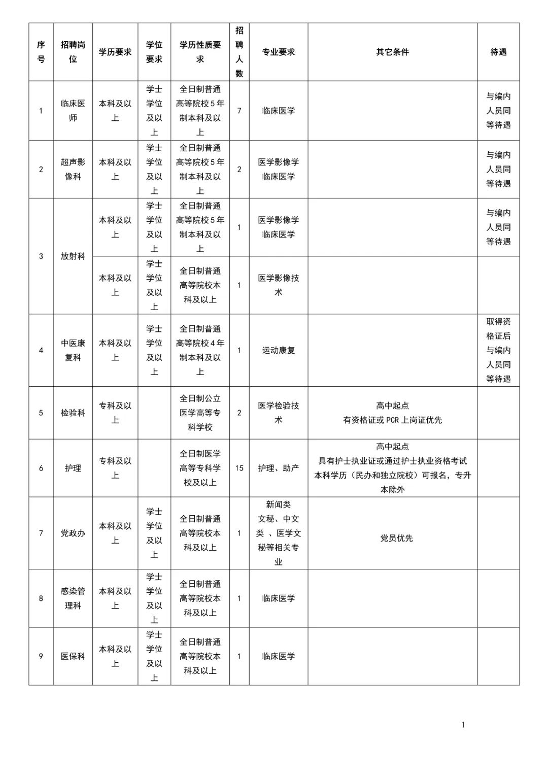 附件1:《昆明市晉寧區(qū)人民醫(yī)院2022年第一輪公開招聘編外專業(yè)技術(shù)人員崗位計劃表》