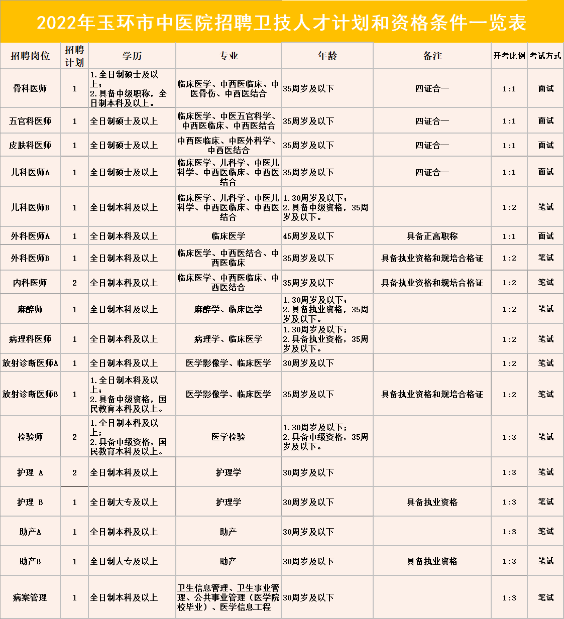 考核方式具體詳見(jiàn)《2022年玉環(huán)市衛(wèi)生健康系統(tǒng)招聘衛(wèi)技人才計(jì)劃和資格條件一覽表》,按計(jì)劃表中的比例開(kāi)考??荚嚂r(shí)間暫定為4月16日,具體詳見(jiàn)準(zhǔn)考證。