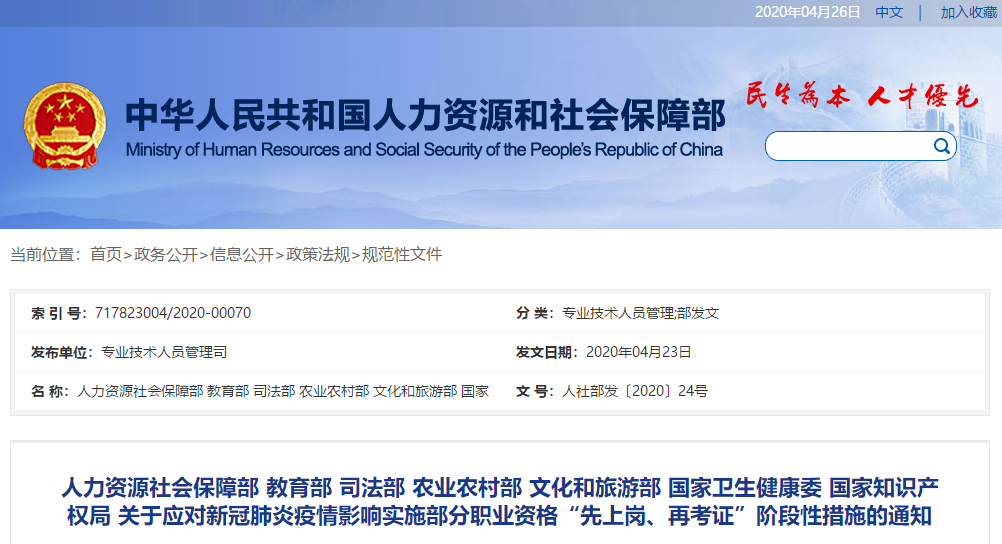 【通知】應對新冠肺炎疫情影響實施部分職業(yè)資格“先上崗、再考證”階段性措施