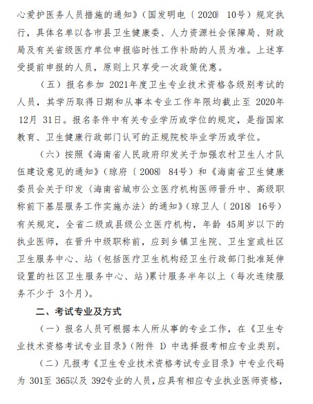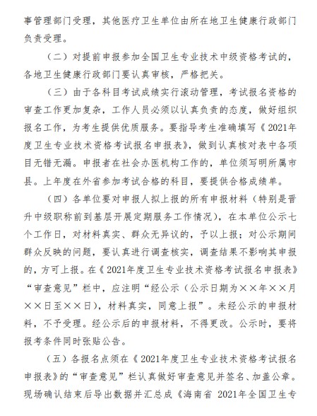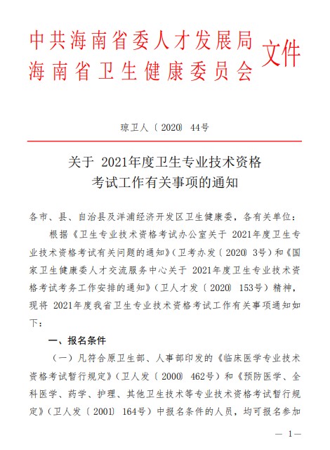 海南關(guān)于2021年度衛(wèi)生專業(yè)技術(shù)資格考試工作有關(guān)事項(xiàng)的通知