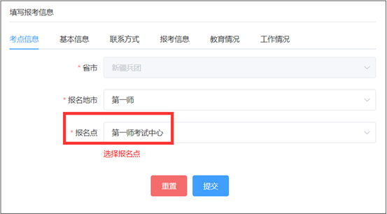 (1)下拉選擇“報(bào)名地市”。非線上確認(rèn)考區(qū)的考生只需選擇“報(bào)名地市”。采用線上確認(rèn)方式的考區(qū),考生須選擇網(wǎng)上確認(rèn)的報(bào)名點(diǎn)。
