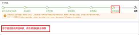 未開通網(wǎng)上繳費(fèi)的考區(qū),【資格審核】節(jié)點(diǎn)變?yōu)榫G色即表示報(bào)名成功。