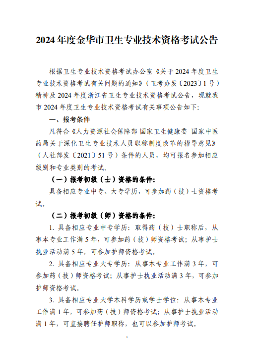 2024年度金華市衛(wèi)生專業(yè)技術(shù)資格考試公告