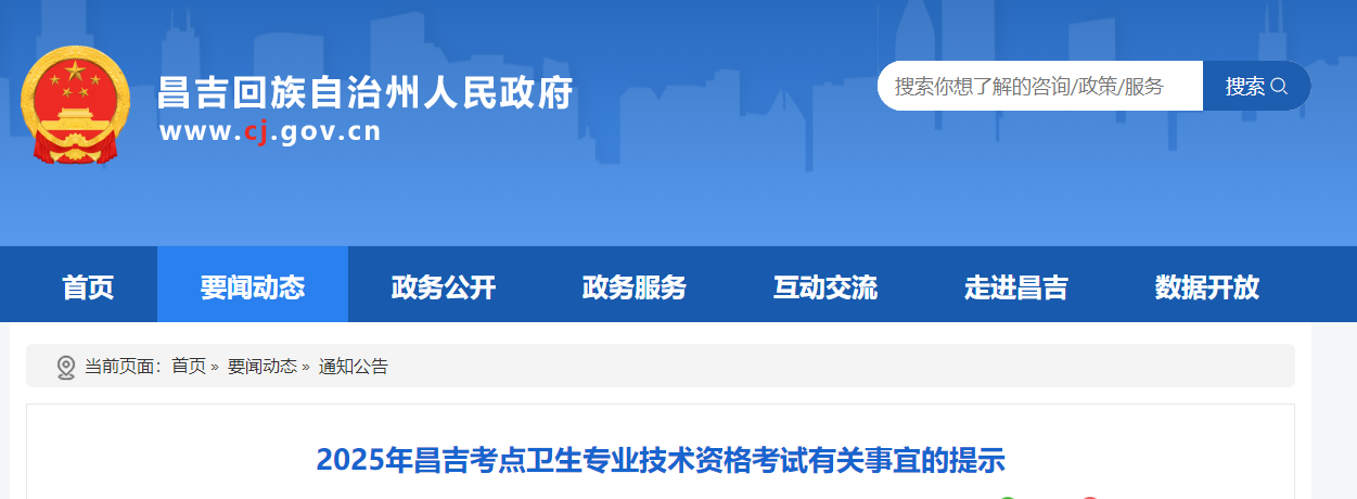 2025年昌吉考點衛(wèi)生專業(yè)技術資格考試有關事宜的提示