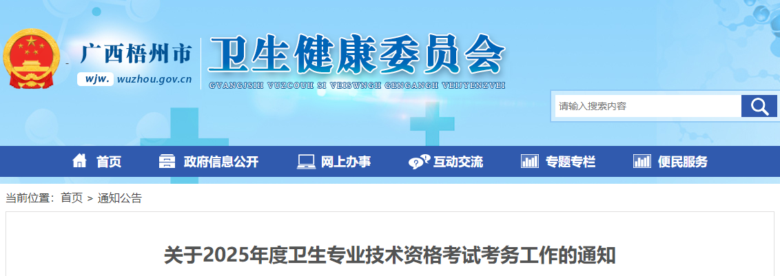 梧州關(guān)于2025年度衛(wèi)生專業(yè)技術(shù)資格考試考務(wù)工作的通知