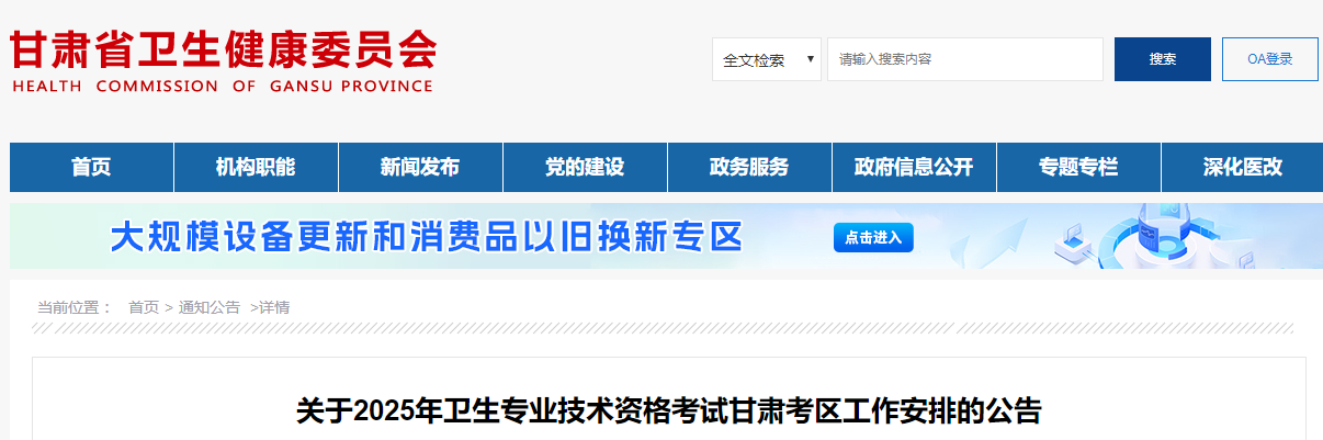 關(guān)于2025年衛(wèi)生專業(yè)技術(shù)資格考試甘肅考區(qū)工作安排的公告
