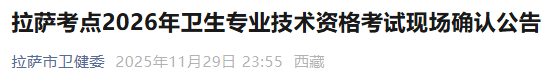 拉薩考點(diǎn)2026年衛(wèi)生專(zhuān)業(yè)技術(shù)資格考試現(xiàn)場(chǎng)確認(rèn)公告