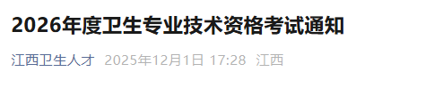 江西2026年度衛(wèi)生專業(yè)技術(shù)資格考試通知