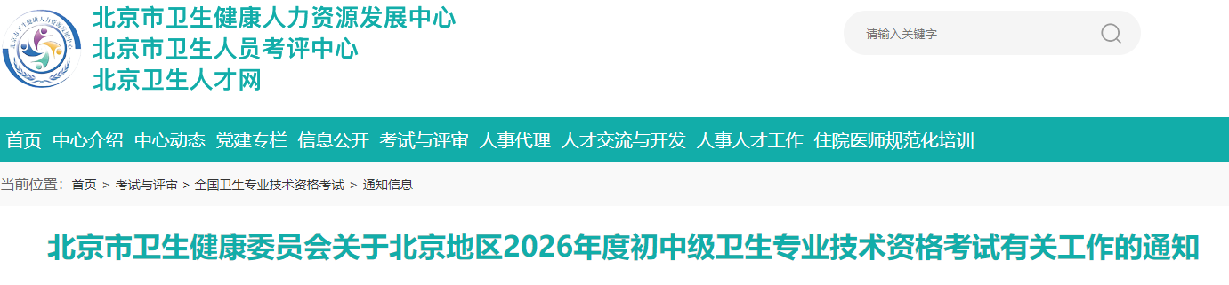 北京市衛(wèi)生健康委員會關(guān)于北京地區(qū)2026年度初中級衛(wèi)生專業(yè)技術(shù)資格考試有關(guān)工作的通知