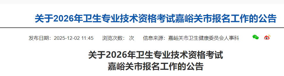 關(guān)于2026年衛(wèi)生專業(yè)技術(shù)資格考試嘉峪關(guān)市報名工作的公告
