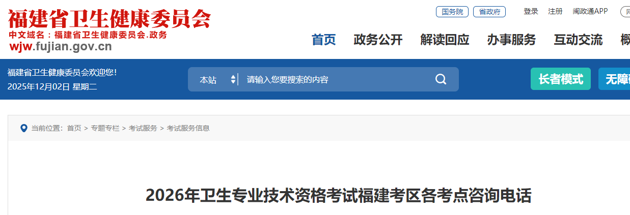 2026年衛(wèi)生專業(yè)技術(shù)資格考試福建考區(qū)各考點(diǎn)咨詢電話
