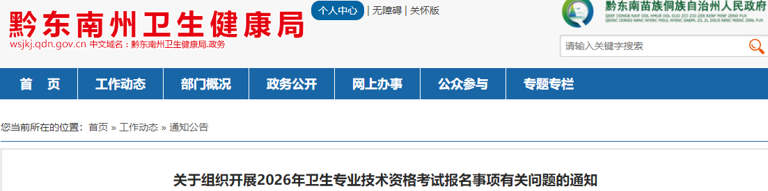 黔東南關(guān)于組織開展2026年衛(wèi)生專業(yè)技術(shù)資格考試報(bào)名事項(xiàng)有關(guān)問題的通知