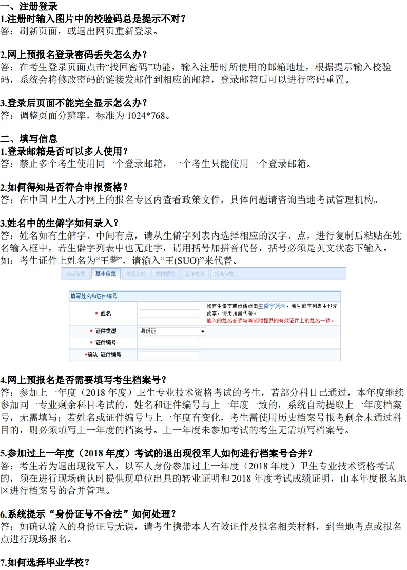 2019年衛(wèi)生資格考試報名即將于1月10日開始,報名過程中各位考生不免各種問題。為了解決大家的疑問,順利報名,醫(yī)學教育網專門為大家搜集整理報名常見問題解答。