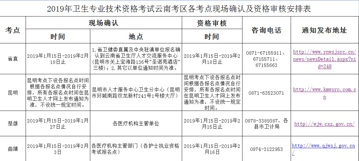 - · 云南省各地區(qū)2019年衛(wèi)生資格考試報名現(xiàn)場審核時間|地點(diǎn)